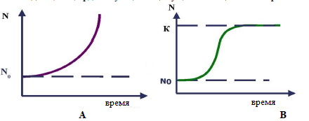 На рисунке изображены кривые роста популяции.