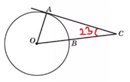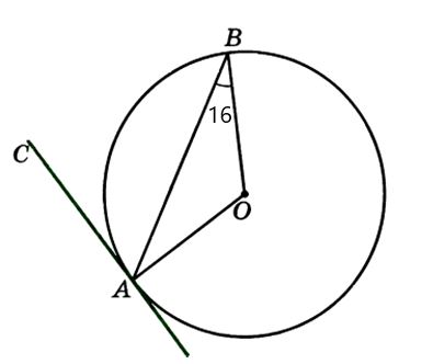 Вычислите значение ᴗАВ окружности, заключенной внутри угла, если АС - касательная к окружности.