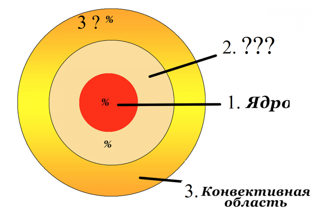 Какой элемент в зональном строении Солнца не указан на рисунке? (Термин из учебника)