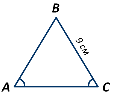 В треугольнике АВС угол А равен углу С. Чему равна сторона АВ, если длина стороны ВС равна 9 см?