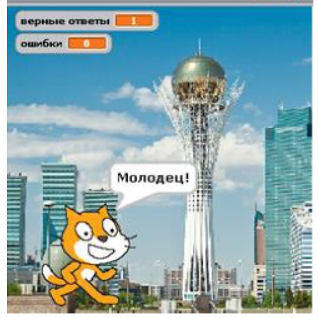 Айым создала игру-путешествие по столице нашей Родины. На рисунке изображена одна из сцен её программы.