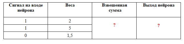 - Взвешенная сумма = 6,5, Выход нейрона = 1