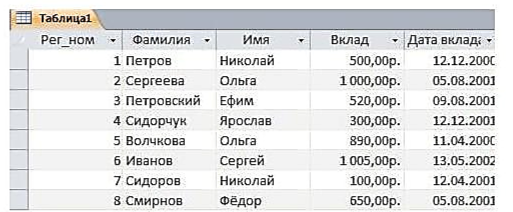 Основной объект базы данных, в котором хранятся все данные, имеющиеся в базе, а также структура базы (поля, их типы, свойства):
