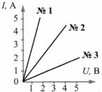 Среди проводников, для которых на графике представлены зависимости силы тока от напряжения, какой проводник обладает наименьшимсопротивлением?
