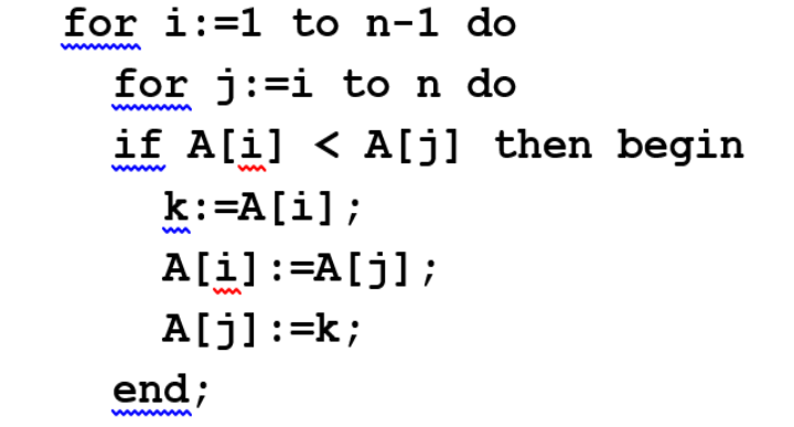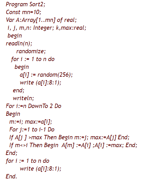Алгоритм требует многократных проходов по сортируемому массиву, при которых в конце массива формируется отсортированный участок, причём с каждым проходом его длина увеличивается как минимум на единицу.