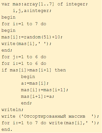 - В результате массив будет иметь вид: 15 14 13 12 11 10 9 8 7 6 5
