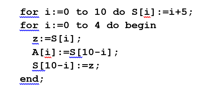 В программе описаны целочисленные переменные z, i, целочисленный массив с индексами от 0 до 10. Выберите правильные утверждения.