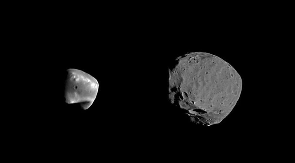 Напишите названия двух спутников Марса (в алфавитном порядке через запятую).