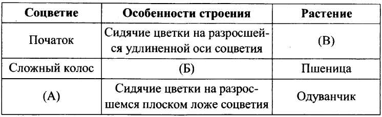 Проанализируйте таблицу -Типы соцветий-. Выберите соответствующий термин из предложенного списка для ячейки, обозначенные буквой В.