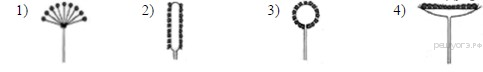 На рисунке изображён клевер луговой. Под каким номером расположена схема, соответствующая расположению цветков в его соцветии?