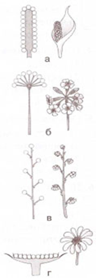 На рисунке соцветие кисть обозначено буквой: