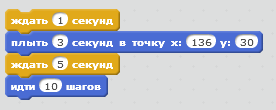 - Мгновенно переместиться в точку 136; 30 и подождёт 1 секунду.