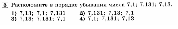 "Сравнение десятичных дробей" 1 вариант