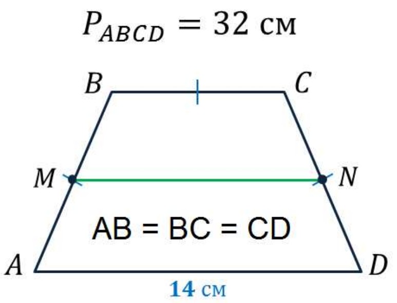 Пользуясь данными рисунка, вычислите длину средней линии MN в сантиметрах.