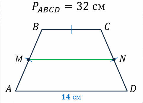Пользуясь данными рисунка, вычислите длину средней линии MN в сантиметрах. В ответе укажите только число.