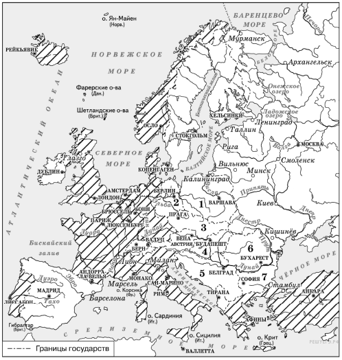 Укажите аббревиатуру, обозначающую название военной организации (военного блока), противостоявшей военно-политическому блоку, включавшему страны, заштрихованные на схеме.
