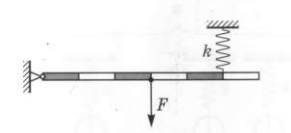 Найдите эффективную жесткость системы. Внешняя сила прикладывается к ней в месте, обозначенном на рисунке стрелкой. Жесткость k=90 Н/м.