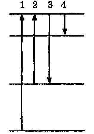 На рисунке изображена схема энергетических уровней атома. Какой цифрой обозначен переход с одного энергетического уровня на другой электрона, поглощающего фотоны с максимальной энергией?