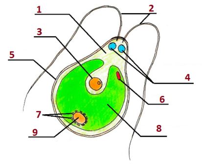 Подберите органоиды хламидомонады (под цифрой 5 вводите вариант 1, под цифрой 6 - вариант 2, и т.д.)