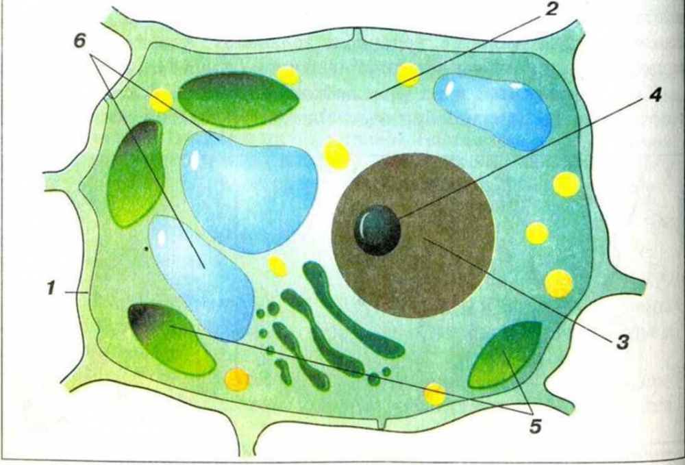 Под каким номером обозначена на рисунке структура в виде пузырька, в котором находится клеточный сок (ВПИШИТЕ ТОЛЬКО ЦИФРУ)