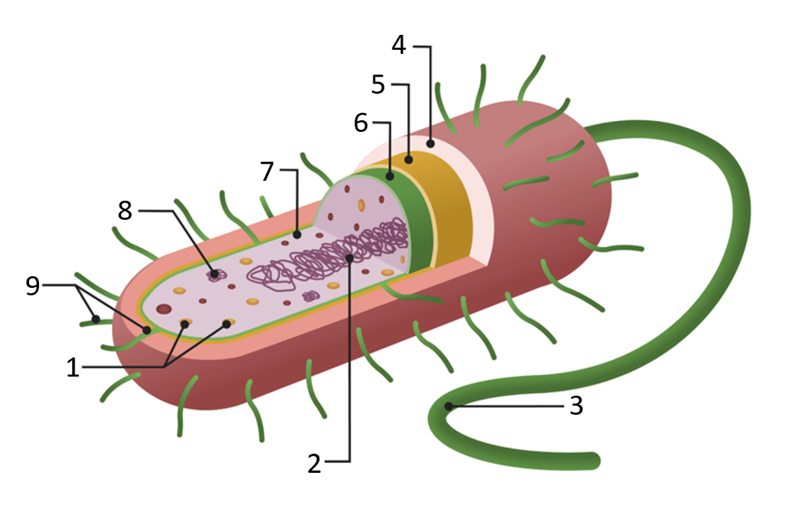Укажите номер, которым на рисунке показана муреиновая клеточная стенка.