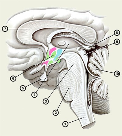 - Продолговатый мозг (мозговой ствол):