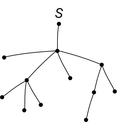 На рисунке изображено дерево. Сколько цепей, соединяющих начальную вершину S с концевыми, имеют длину 3?