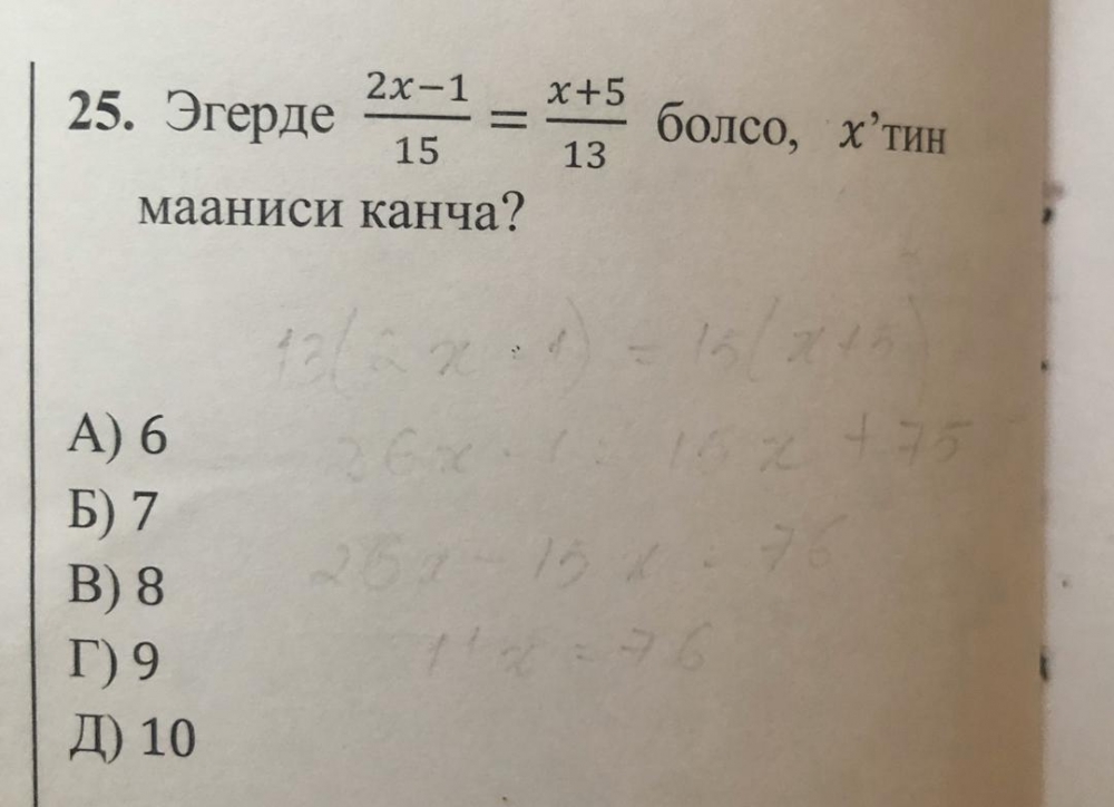 СЕКОМ билим беүү мекемесинин "Сызыктуу теңдемелер" темасындагы 15-31 суроолорунан түзүлгөн тест