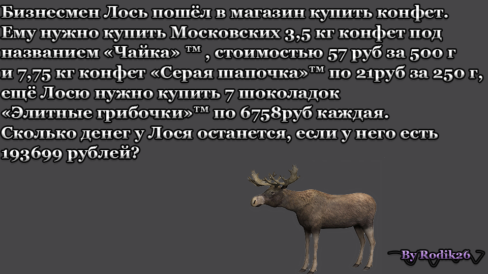 ЛОСЬ, ты чё? Я тибе ни буду пацказывать! сам ришай двоищник!!!