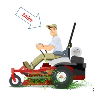- Mike is cutting the grass.