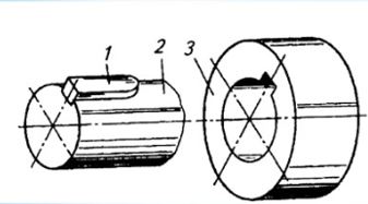 соединение представляет собой стальной брус, устанавливаемый в пазы вала и ступицы