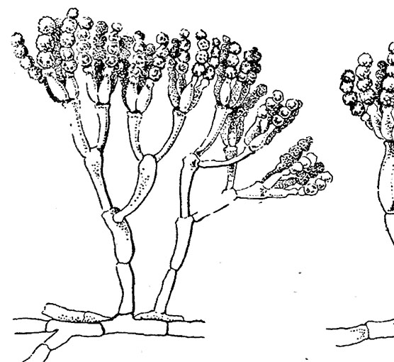 На рисунке изображён плесневый гриб. Что изображено под знаком вопроса?