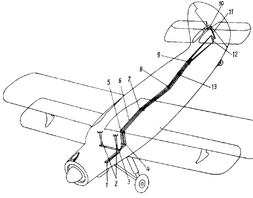 - смешанного типа: от штурвалов до двуплечей качалки на шпангоуте № 4 — тросовая и от двуплечей качалки до элеронов — жесткая.