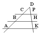 Прямые AK, BH и CP параллельны и DP = PH = HK. Найдите длину отрезка CD, если AD=15.