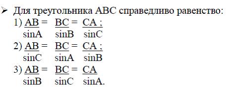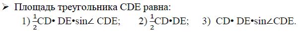 1) Площадь треугольника равна произведению двух его сторон на синус угла между ними;