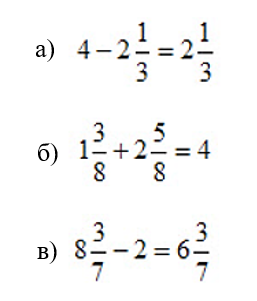 - чтобы сложить два смешанных числа, необходимо целые части сложить, а дробные части вычесть