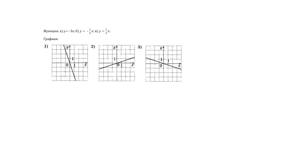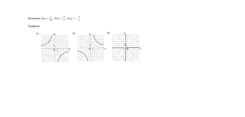 1. Установите соответствие между функциями и их графиками. В ответе запишите цифры в порядке соответствующим функциям А, Б, В соответственно, например 123 означает А-1, Б-2, В-3.