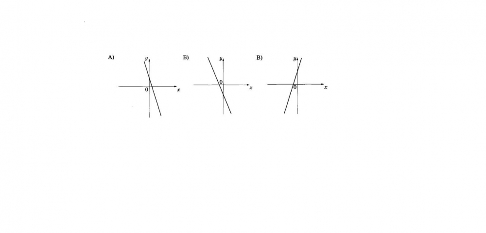 5. На рисунках изображены графики функций вида y=kx+b. Установите соответствие между графиками функций и знаками коэффициентов k и b. В ответе запишите цифры в порядке соответствующим графикам А, Б, В соответственно, например 123 означает А-1, Б-2, В-3.