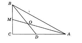 В прямоугольном треугольнике АВС АМ и BD - биссектрисы треугольника. Тогда ∠ВОМ =