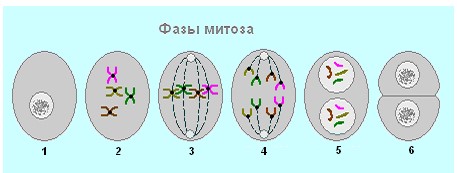Под каким номером на рисунке изображена стадия митоза – анафаза? Запишите ответ цифрой: