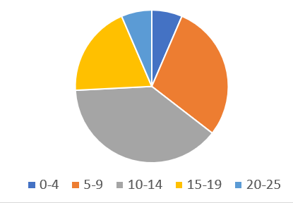 В онтябре месяце производили монитринг среднедневной температуры внекоторой местности. Все полученные данны разделили на 5 групп: 0-4; 5-9; 10-14; 15-19; 20-25 градусов. По этим данным построили две диаграммы - круговую и столбчатую, но не подписали ни количество дней, ни доли, например: