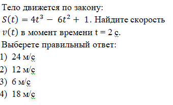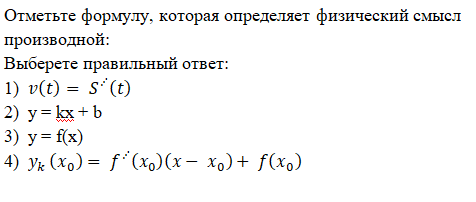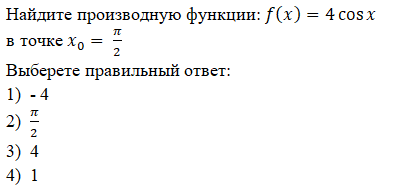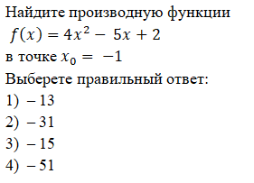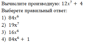 Тест на тему: «Производная»