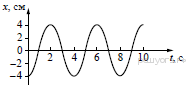 На рисунке представлен график гармонических колебаний математического маятника. Чему равна амплитуда колебаний? Ответ запишите в см.