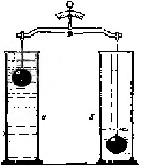 3. Тела опущены в мензурки с водой и уравновешены на рычаге (рис. ). Нарушится ли равновесие весов, если в мензурку б налить столько же воды, сколько ее в мензурке а?