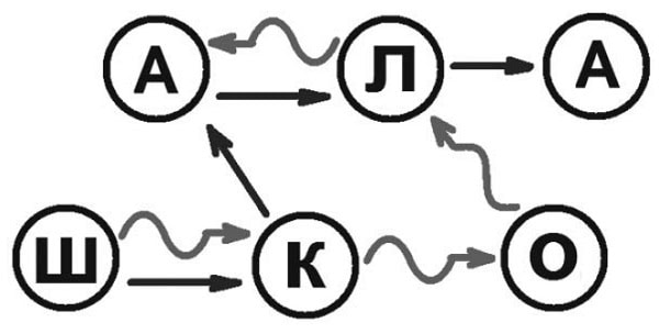 Двигаясь по волнистым стрелкам, прочитай слово.