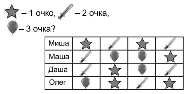 В таблице показаны призы, собранные ребятами в компьютерной игре. Кто набрал больше очков, если