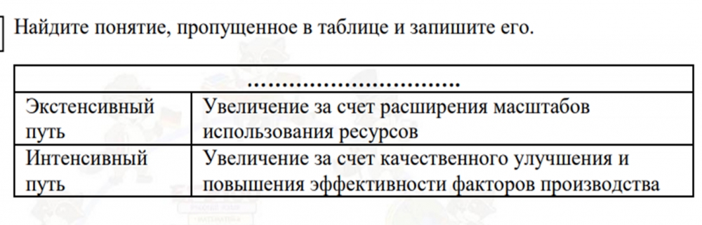 Найдите понятие, пропущенное в таблице и запишите его (словосочетания записываются без пробелов)