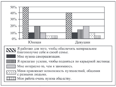 - Половина юношей работает для того, чтобы обеспечить материальное благополучие себе и своей семье.