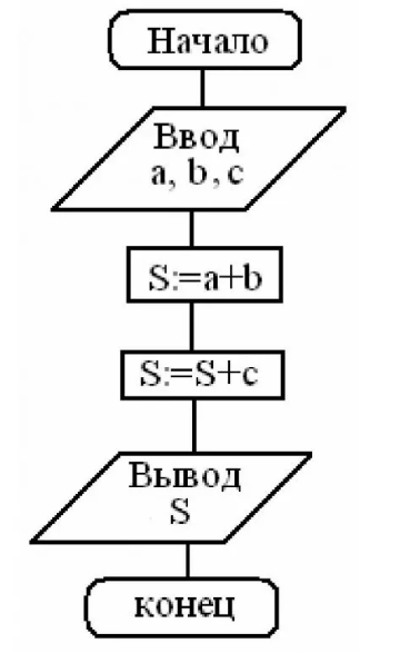 Дана блок-схема алгоритма. Чему будет равно S после выполнения алгоритма при a=1; b=2, c=3. Запишите полученное число.