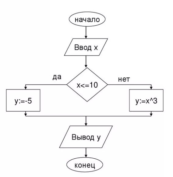 Дана блок-схема алгоритма. Чему будет равно y после выполнения алгоритма при x=5. Запишите полученное число.